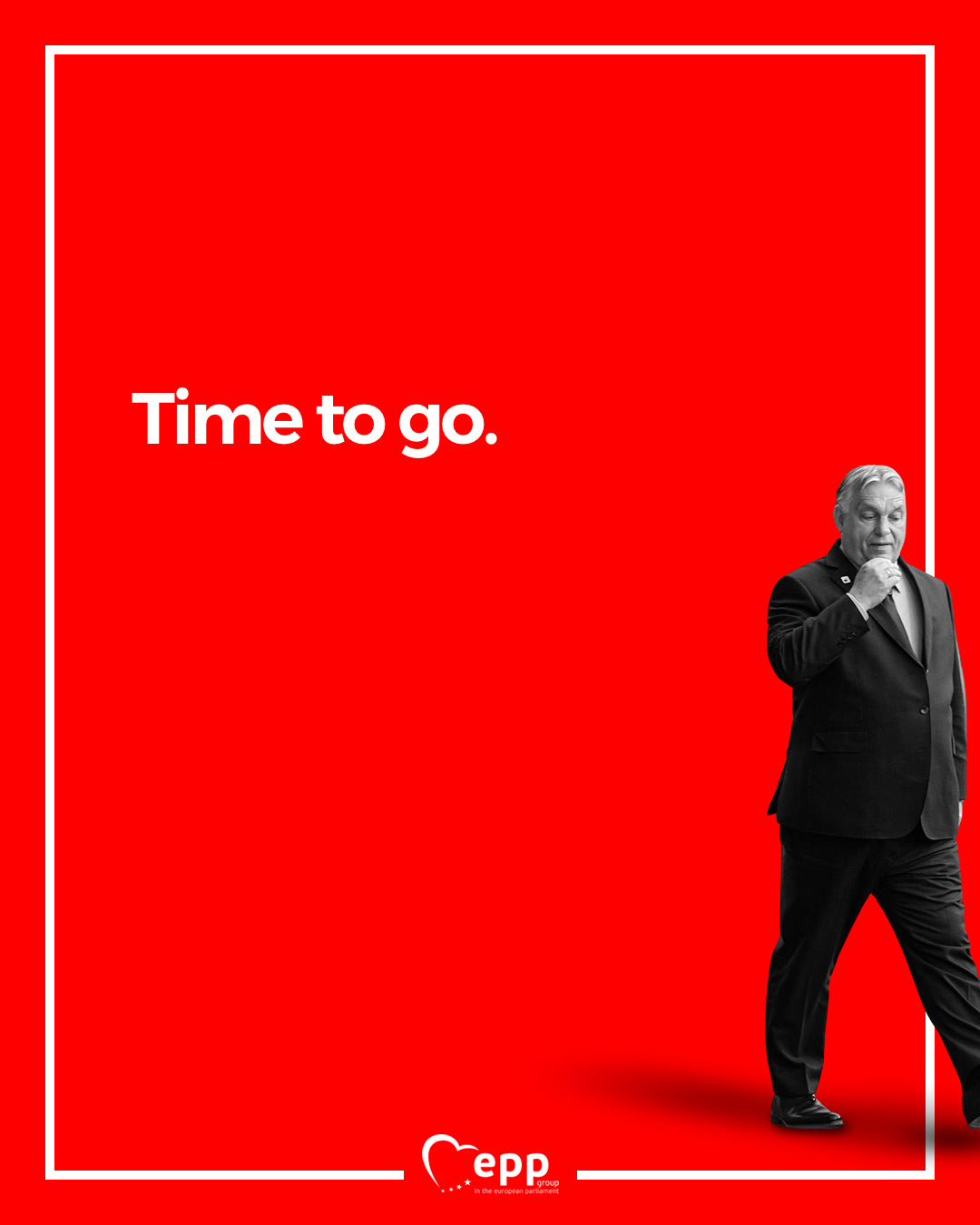 Magyarországot újra közelebb kell hozni Európához, és esélyt kell adni a rossz vezetés okozta károk helyreállítására”. Ezzel a képaláírással hozott le egy posztot Facebook oldalán az Európai Néppárt. A képen piros háttérben látszik a magyar miniszterelnök, feketével a szöveg: „Ideje távozni”.