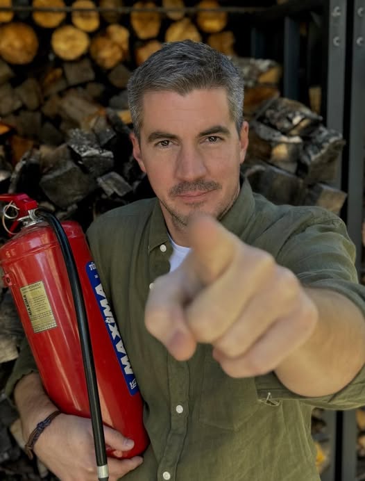 – követeli Kocsis Máté csupa nagybetűvel, poroltóval a kezében, egy rakás fa elől.