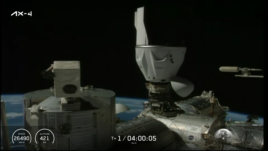 Bő egy nappal azután, hogy útnak indult az Axiom Space Ax-4 küldetése, Kapu Tibor és három űrhajóstársa sikeresen dokkolt a SpaceX űrhajójával a Nemzetközi Űrállomáshoz. A művelet során nem lépett fel semmilyen komplikáció, ami azért is fontos, mivel ez volt a mostani űrhajó – a Grace – első útja a világűrbe.