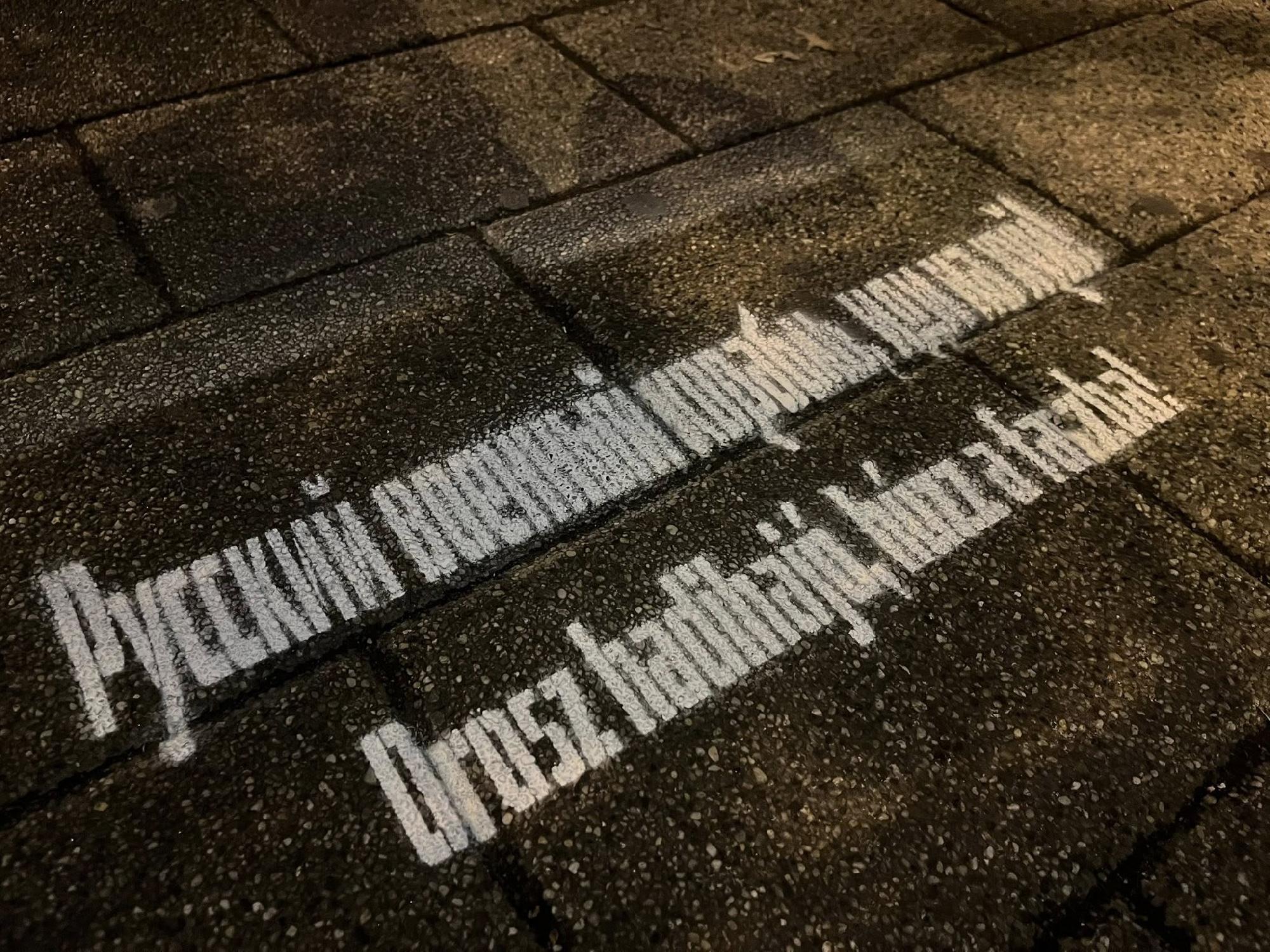 A Kutyapárt aktivistái az: "Orosz hadihajó, húzz a faszba" és a "Trump bölcs" feliratokat fújták az úttestre.