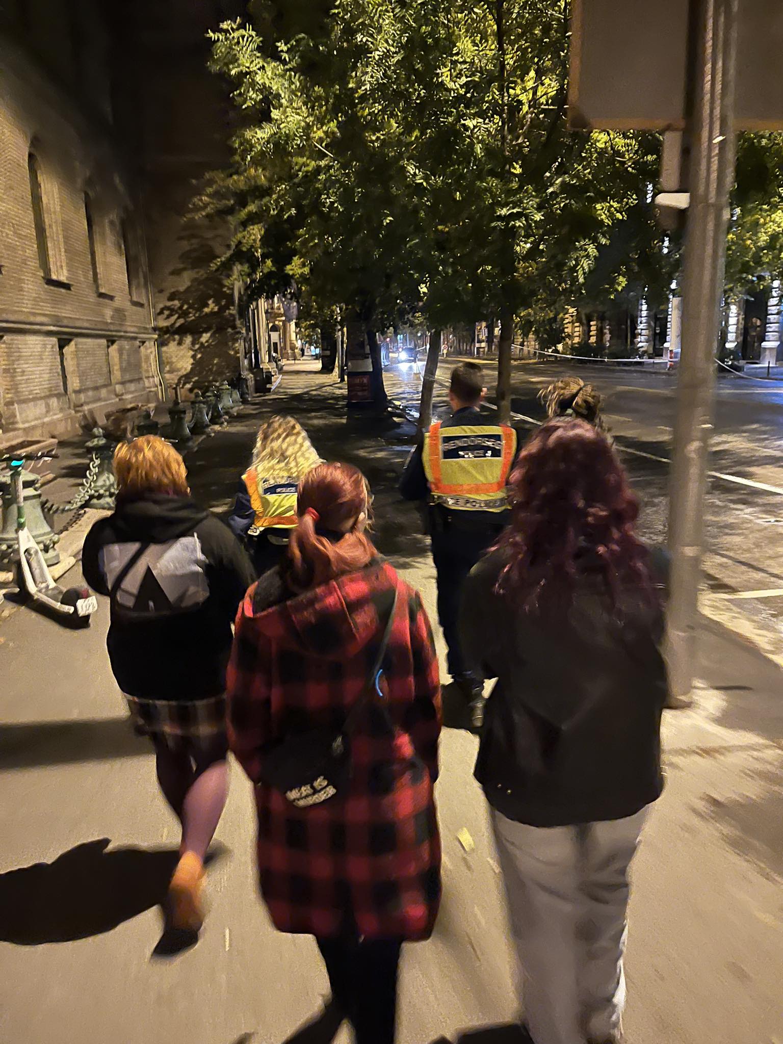 Rendőrök vitték be ma hajnalban a Magyar Kétfarkú Kutyapárt három aktivistáját, mert a Békemenet útvonalán üzenetek festettek a járdára. Erről Nagy Dávid pártigazgató számolt be a Facebook-oldalán.