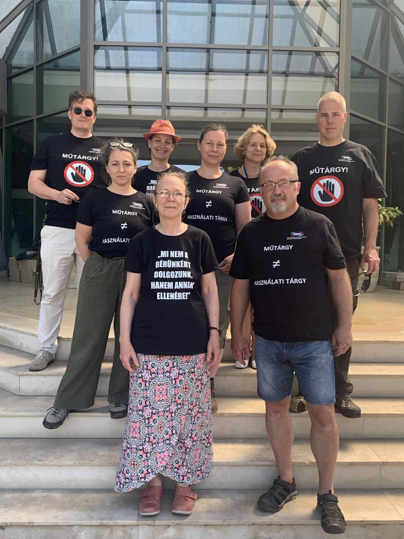 A tiltakozó akciót a KKDSZ Kulturális Szakszervezet szervezte meg.