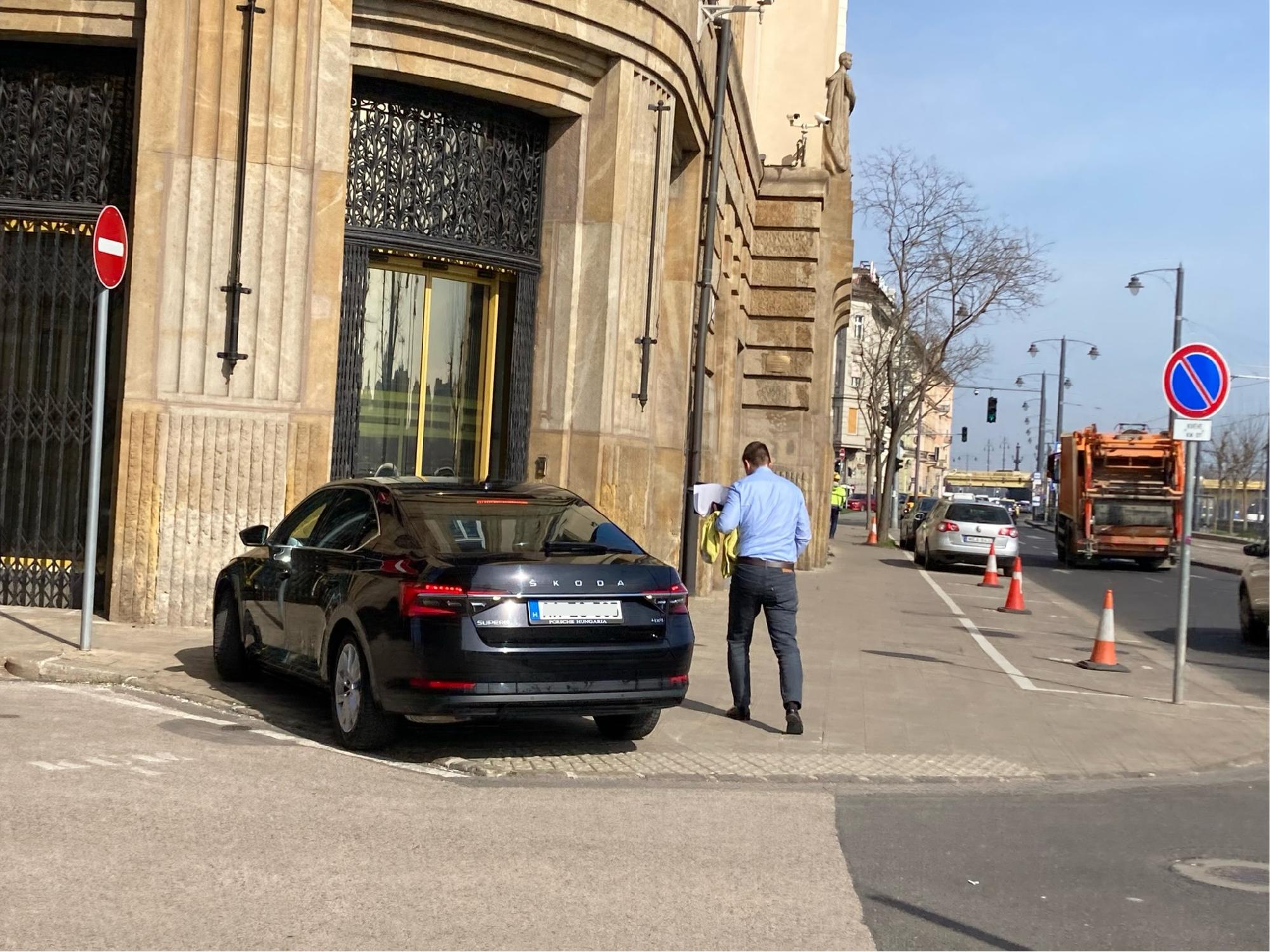 Hadházy vasárnap jelentette, hogy az államtitkár kocsija a járdán áll.