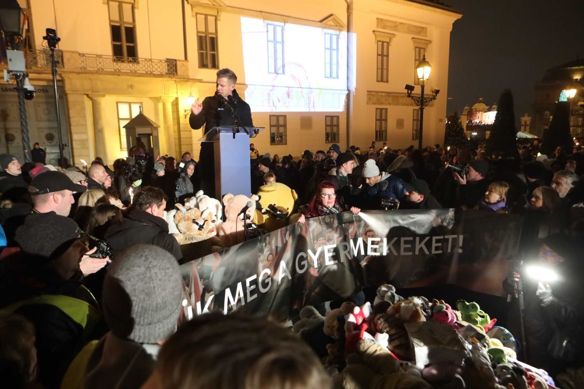 Azt is mondta: a hatalom legalább négy-öt éve tudott arról, ami történik a gyermekvédelemben. Lehet, hogy Tuzson Bence, Sulyok Tamás, Orbán Viktor ráér, de a gyerekek nem, nekik nincs még négy évük, ők most vannak veszélyben. Kiemelte, "nem haragból, nem politikai számításból, nem bosszúból állunk most itt. Hanem azért, mert a hazánk eljutott arra a pontra, amikor nem lehet tovább várni, nem lehet csöndben maradni".