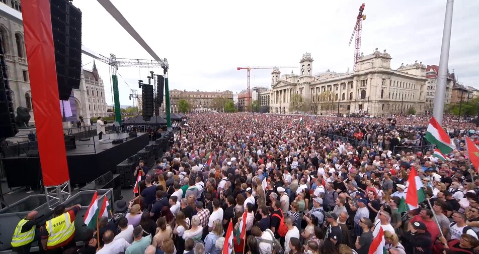"2024. április 6. Jegyezzük meg a dátumot. Mától nem lesz semmi ugyanúgy" – kezdte beszédét, amely jelentős részben magáról arról a tényről szólt, hogy rengetegen gyűltek össze a helyszínen és, hogy ezen kívül is rengetegen üzentek neki, illetve a szervezőknek. "Egyedül mentem be egy stúdióba februárban, aztán néhány százan álltak mellém, március 15-én már 50 ezren ünnepeltünk együtt. Most pedig több százezren vagyunk" – mondta a politika világába hirtelen belépő Magyar, hozzátéve, hogy az otthon lévőkkel együtt talán már milliók vannak, akik nem félnek.