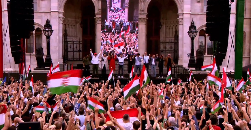 A Nemzeti menet és demonstráció egy új Magyarországért címmel meghirdetett tüntetésen megtelt a Kossuth tér és a környező utcák is. A tömeg a Deák térről vonult át, de addigra már rengetegen várakoztak a Parlament környékén is. A szervezők többször hangsúlyozták, hogy mennyien jöttek vidékről és a határokon túlról is, többször el is hangzott a kérés a színpadról, hogy tartsák a magasba a helységneves tábláikat. Helyszíni tudósítónk is megerősítette, hogy sokféle helyről érkeztek a résztvevők, olyannal is találkozott, aki a tengerentúlról jött.