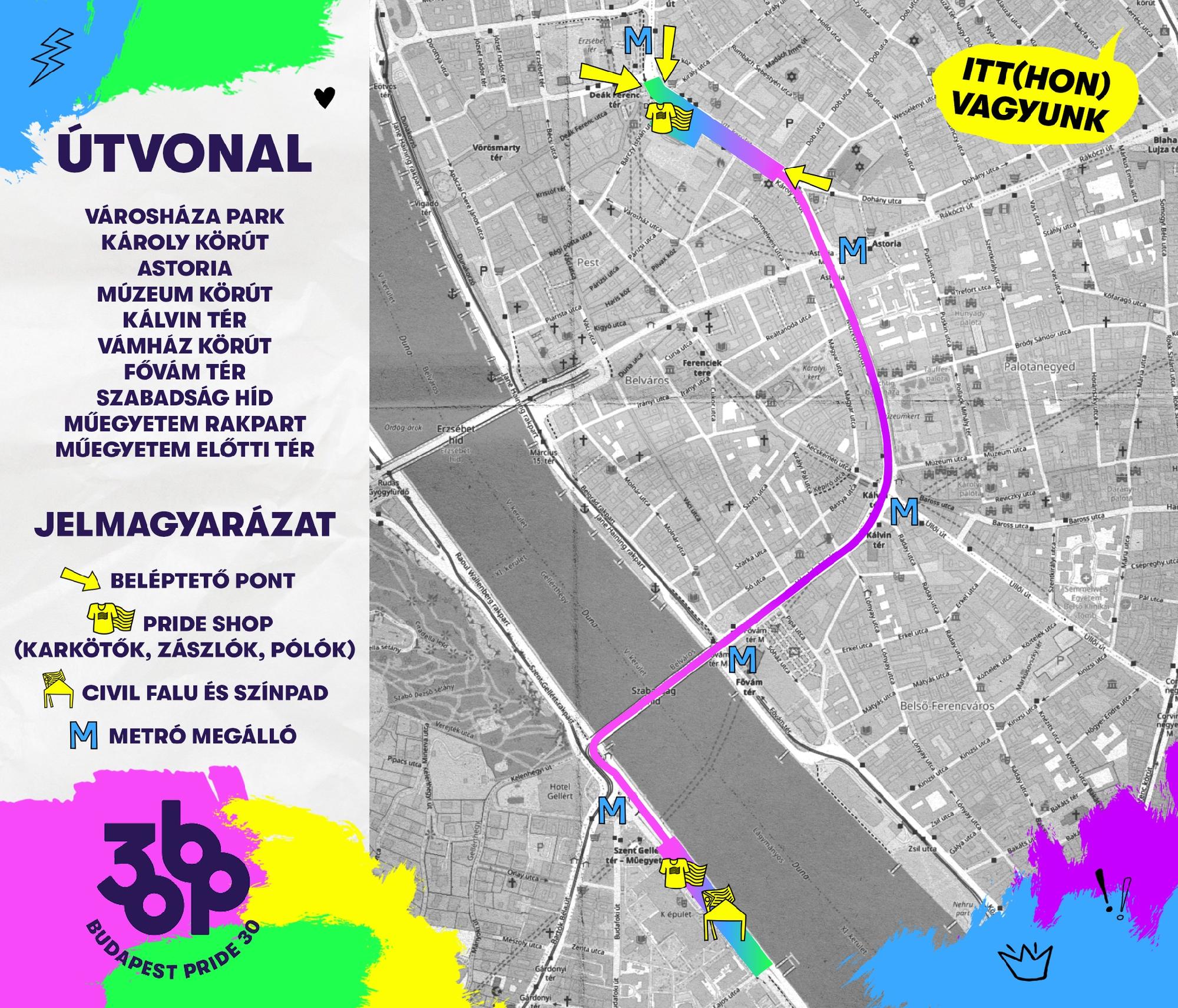 Közzétették Budapest Pride hivatalos útvonalát: szombaton 14 órakor a Városháza park előtt várják az érdeklődőket, majd 15 órakor indulnak el a Kiskörúton, át a Szabadság hídon, hogy végül a Műegyetem elé érkezzenek meg – közölték a szervezők a Facebookon és az esemény honlapján.