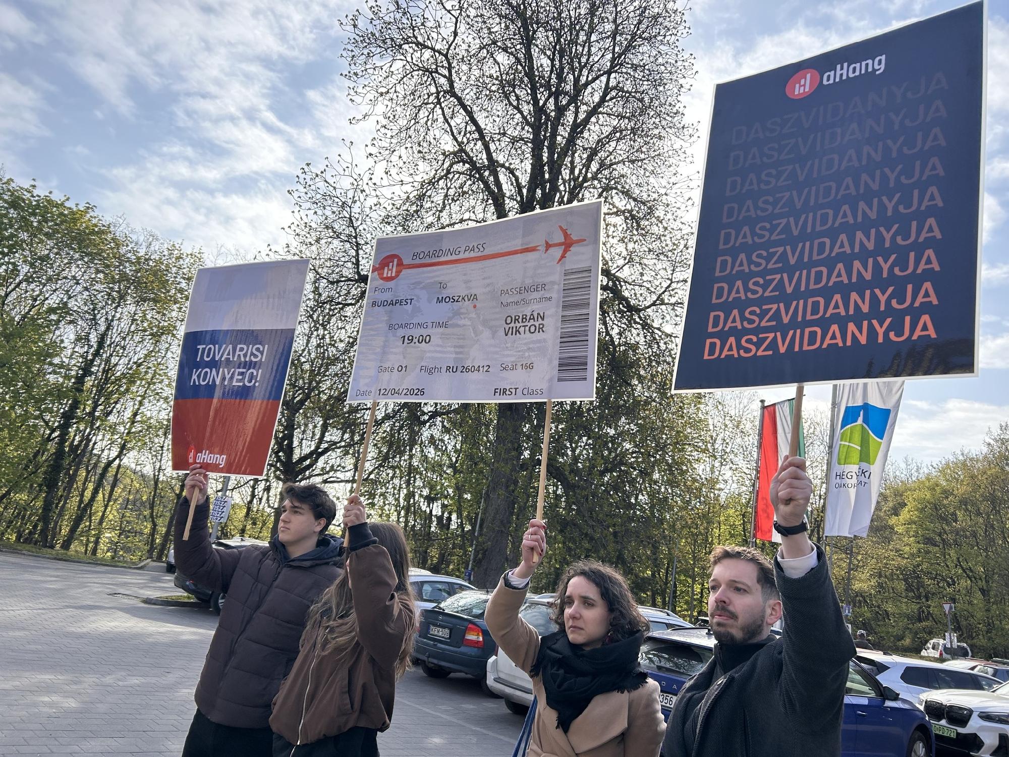 A közleményben azt írták: az aHang azért szervezte az akciót, hogy Orbán Viktort is szembesítsék a választás tétjével: Európa vagy Oroszország.