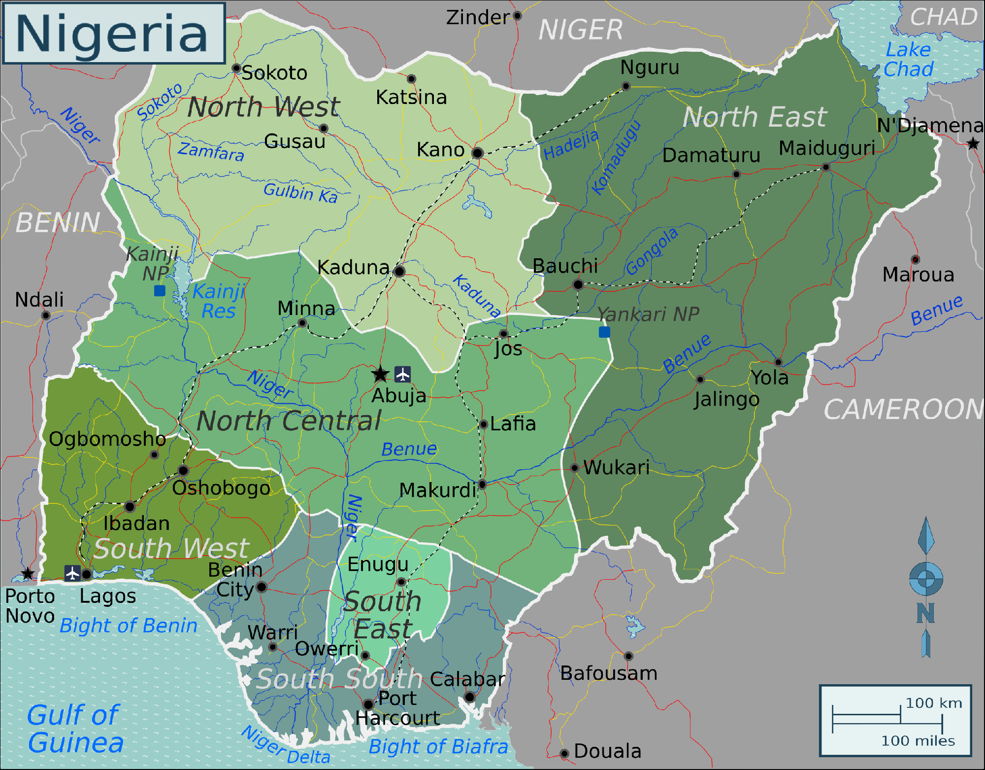 Nigéria régióinak térképe