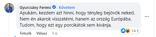 Gyurcsány kommentelt Orbánnak: Apukám, kezdem azt hinni, hogy tényleg bejövök neked