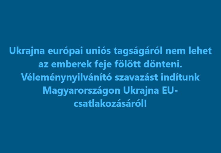 A miniszterelnök szerint tehát újra elő kell venni Ukrajna uniós tagságának kérdését, mert szerinte „felelősen emellett most nem lehet dönteni”. Erről az emberek feje felett születne döntés, „úgyhogy arra jutottam itt a vita végén, hogy kezdeményezni fogunk egy véleménynyilvánító szavazást Ukrajna európai uniós tagságáról. Úgy fogjuk lebonyolítani, mint a nemzeti konzultációkat szoktuk, gyorsan és egyszerűen. Aztán meglátjuk.” – idézi a 444.