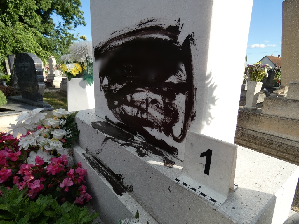 A gondnok bejelentésére mentek rendőrökjúlius 19-én a temetőbe: egy ismeretlen több sírhelyet összefestett és mécsestartót tört össze. Több százezer forintos kárt okozott.
