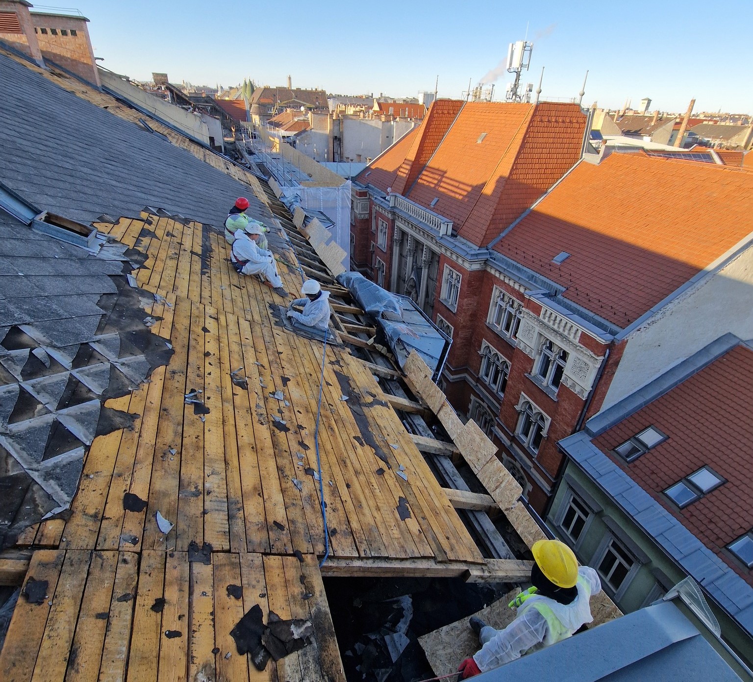A tegnap megbontott tető szerkezete azbesztet tartalmazó palából készült. Ha ezt megfelelő védelem nélkül bontják, a felszabaduló azbesztszálak belélegzése súlyos egészségügyi károsodást okozhat – nemcsak a munkásoknak, hanem mindenkinek a környéken - hívta fel a figyelmet Pikó András.