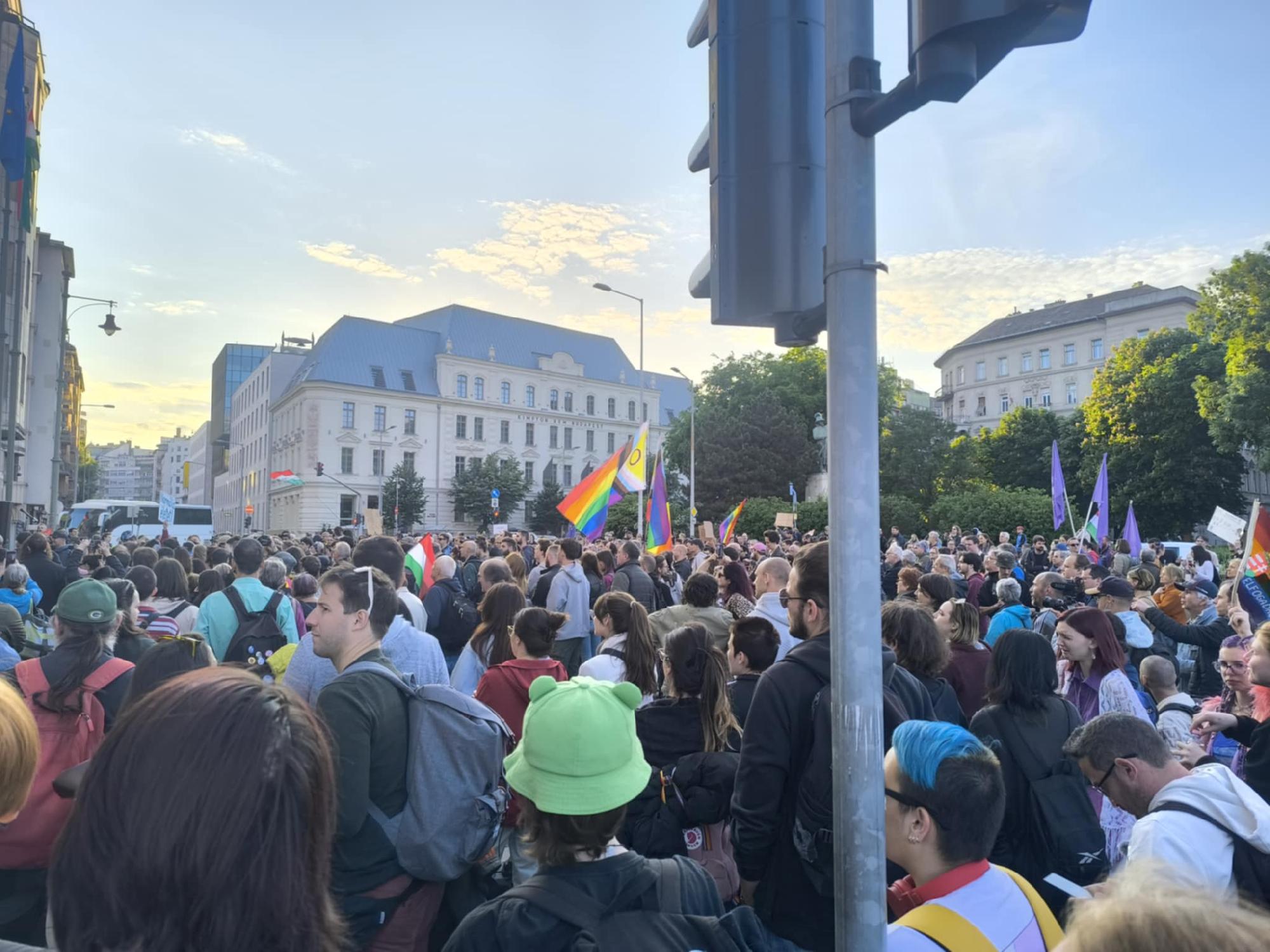 Kedden délután 5-től ismét a Ferenciek terén gyülekeztek Hadházy Ákos hívására azok, akik a gyülekezési jog korlátozása, illetve a Pride betiltását lehetővé tevő törvény ellen tiltakoznak. A demonstrációk kilencedik hete tartanak, változó mennyiségű résztvevővel. A megmozdulásokat legtöbbször az Erzsébet hídra vagy a Ferenciek terére hirdették meg, több alkalommal előfordult, hogy a rendőrség nem engedélyezte a tüntetések megtartását az eredetileg bejelentett helyszínen, arra hivatkozva, hogy az aránytalanul akadályozná a forgalmat. Az elutasító határozatokat Hadházyék több esetben megtámadták a bíróságon, a Kúria először igazat adott nekik, később azonban már a rendőrséggel értett egyet.