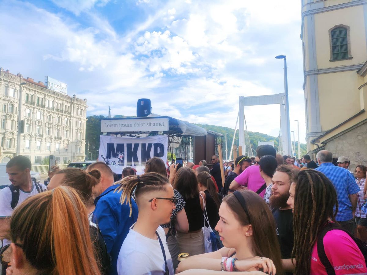 Egy „Lorem ipsum dolor sic amet” feliratú járgánnyal álltak be a buszsávba, feltehetően azzal viccelődve, hogy a tavalyi eucharisztikus kongresszuson is ez a töltelékszöveg jelent meg, amit szövegszerkesztésnél szoktak használni. Ahogy a keddi és a szerdai tüntetésen is, most is csatlakoztak ételfutárok. Piknikhangulat alakult ki negyed hét körül, bekapcsolták a zenét és szisszentek a sörök.