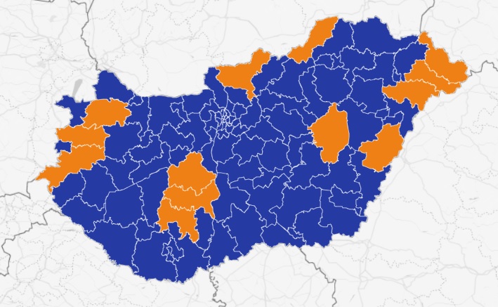 Itt pedig azok a körzetek, ahol a fideszes jelöltek nyertek, vagy közel teljes feldolgozottság mellett szoros versenyben, nyerésre állnak: