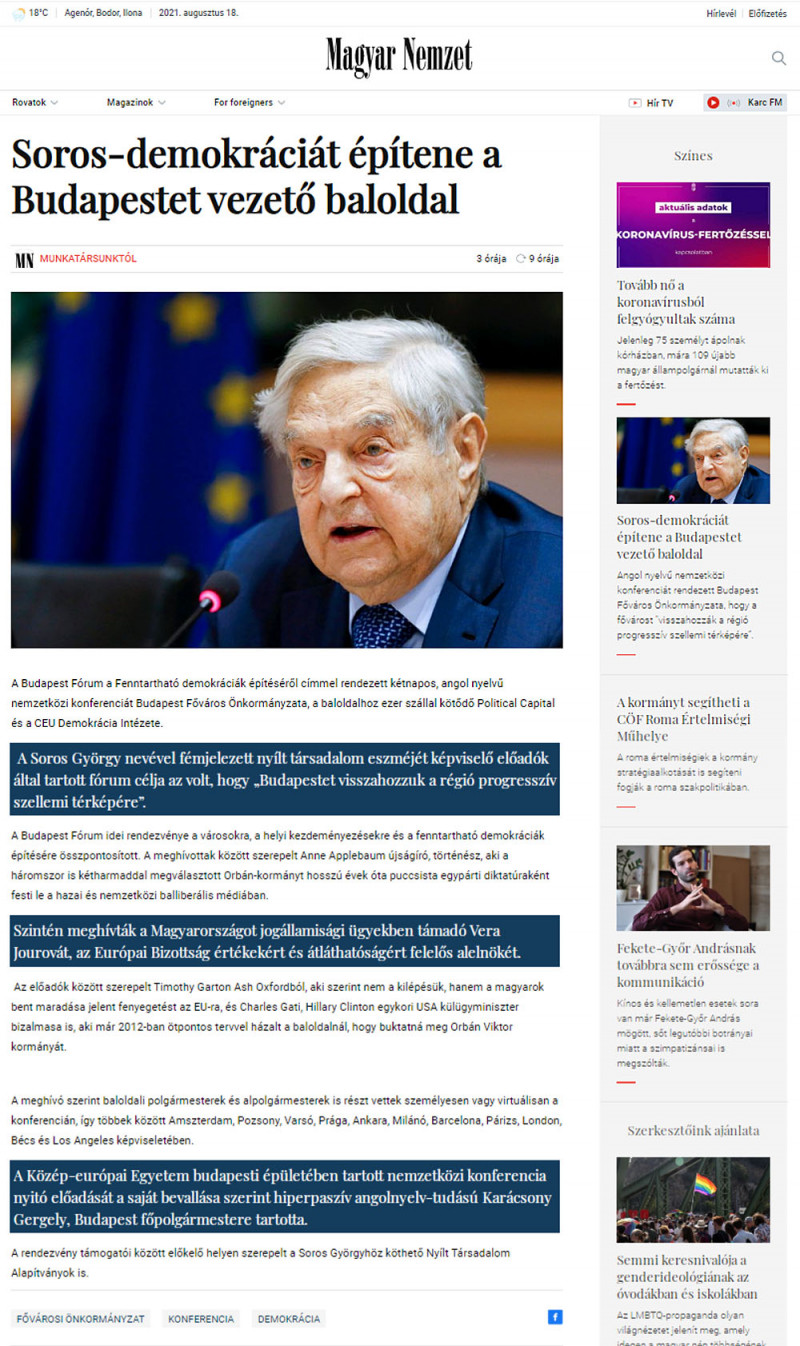 Túl gyors volt a Magyar Nemzet: múlt időben írtak egy szeptemberi „Soros-konferenciáról”