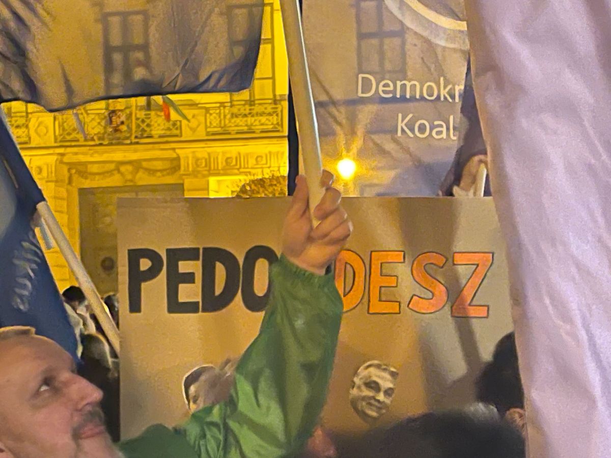 „Novák Katalin ezzel a döntésével az áldozatait köpte szembe. Az igazságos világba vetett hitünket ingatta meg. Novák azt az igazságot kérdőjelezte meg, hogy gyerekeket nem bántunk, soha, semmilyen körülmények között” – mondta, majd egy perc néma csendet kért a tömegtől a további beszédek előtt.