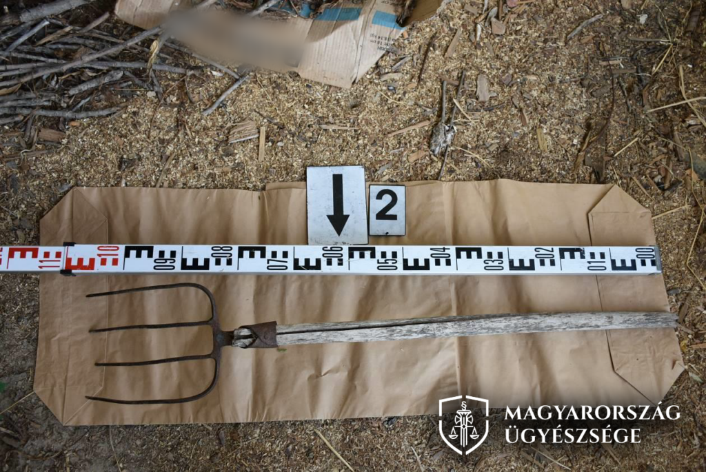A rendőr közölte, miért jött, erre a férfi hirtelen felkapta a közelben letámasztott négyágú vasvillát és határozott léptekkel megindult a rendőr felé. Több szúró mozdulatot tett felé, közben trágárkodva azt kiabálta, hogy