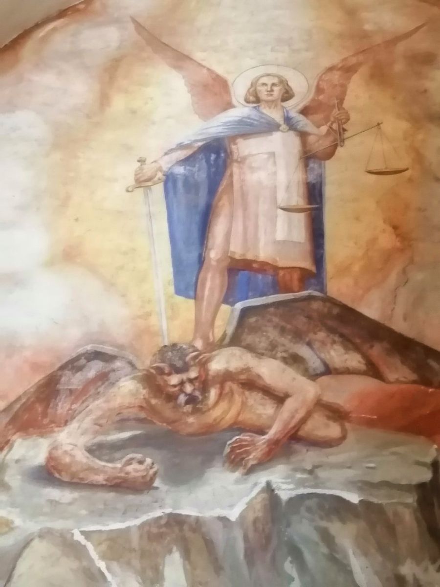 És ha már a történelem ilyen enigmatikusan rejtett szálakat tartogat, nem árt tudni, hogy 1950-ben (!!!) a kolostor templomában egy bizonyos Básti Zoltán nevű festőművész dolgozott, aki a karzat fölött mind a mai napig látható munkájában megjelenítette Szent Mihály arkangyalt, amint a Sztálin arcvonásait viselő ördög felett diadalmaskodik.