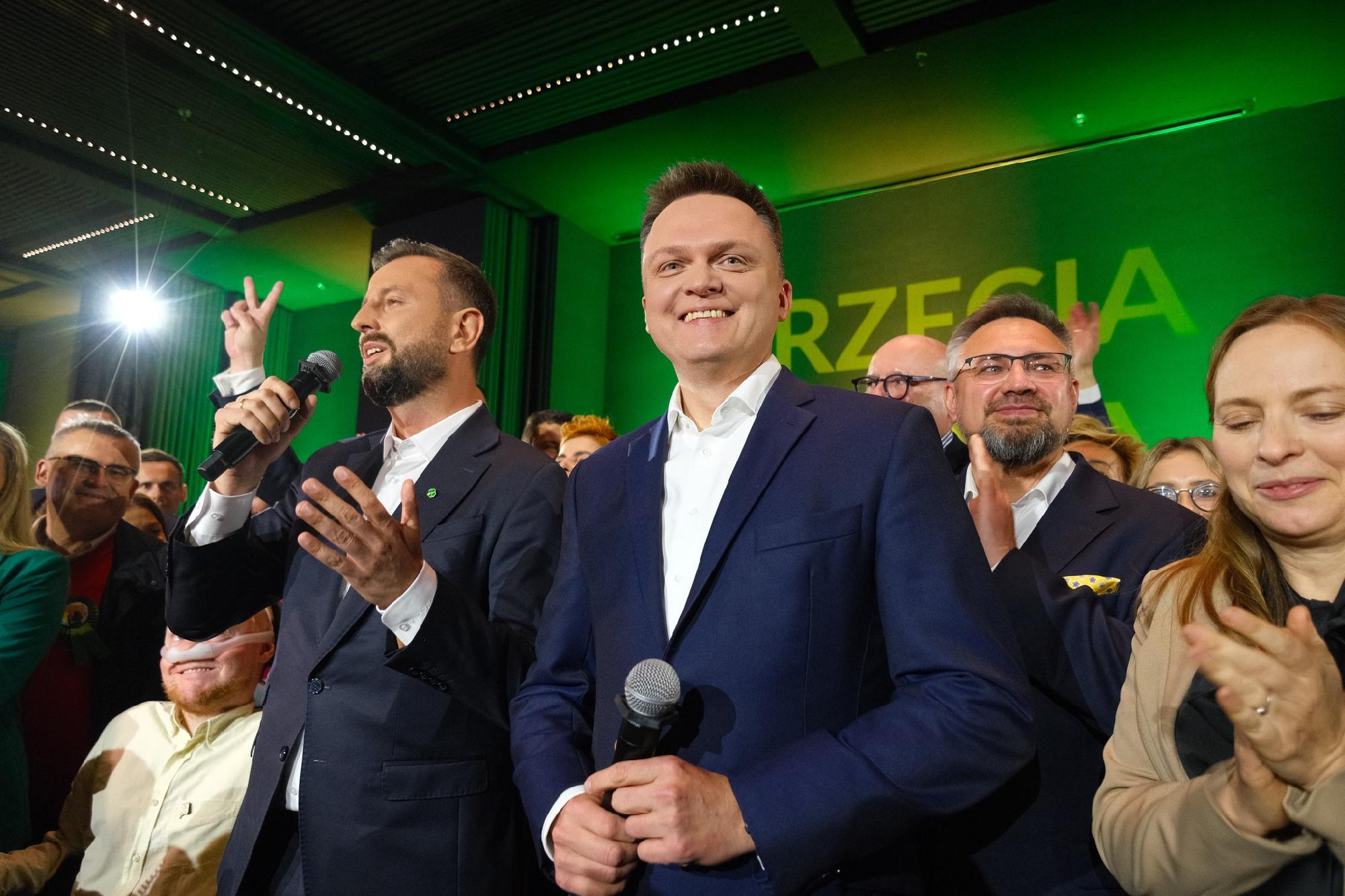 És hogy teljes legyen a lengyel parlament alsóházába bejutott pártok sora, íme a Konföderáció, amely érdekes „átalakuláson” ment keresztül. A közvéleménykutatók szerint a tavalyi év első felében a bejutási küszöb, az 5 százalék elérésével bajlódott, aztán „feltornázta” magát egészen 6-7 százalékra. A 2023-as esztendőt izmosodással kezdte, 10 százalékot mutatott fel, az idei nyár közepére viszont már 16.5 százalékkal dicsekedhetett. A választásra azonban elfogyott a szufla, maradt mindössze 7.16 százalék.
