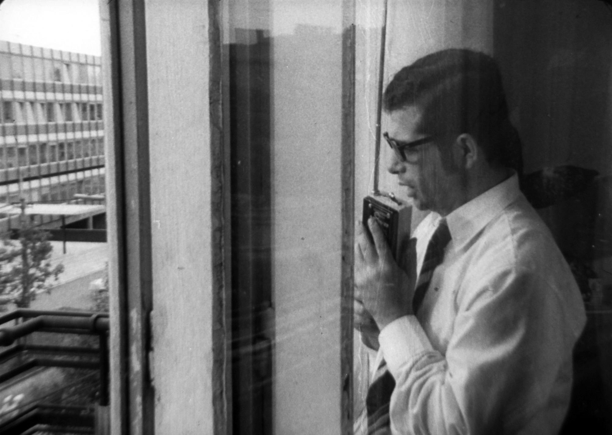 Az idézett szöveg A néző 2016-os kiadásában a 228-229. oldalon található (Magvető). Címlapi kép: Képkocka a Belügyminisztérium Filmstúdiójának A Titkos megfigyelés című oktatófilmjéből. Fortepan/ BM Filmstúdió